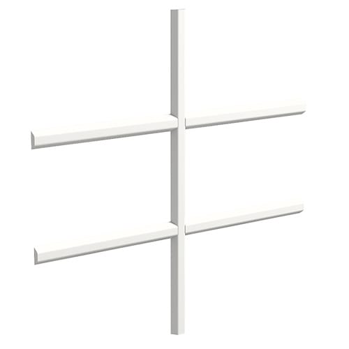 Spröjs i pulverlackerad aluminium. Inga spikar behövs. Clips kläms i kanten av alu-beklädnanden, vilket gör att spröjsen är enkla att ta av vid fönsterputsning. Vita clips till vita spröjs, svarta till andra kulörer. Detta paket innehåller 2 st liggande och 1 st stående spröjs.